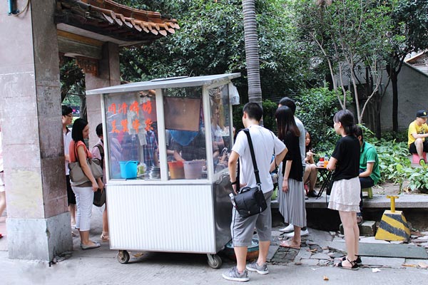 人们围坐着小推车,档主们开始了买卖,到处一遍红火的景象。就算是热辣辣的夏天,对爱吃的人们来说,根本形成不了障碍,谁叫我就爱这阵香气,就爱这种嚼劲,就爱喝热汤逼出来的那种大汗淋漓的感觉。